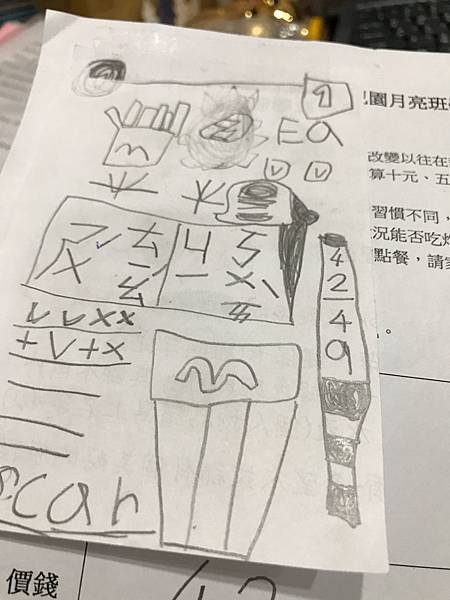 雖然老師要家長在app上確認小朋友點餐的內容和價錢,但哥哥早就在自己的memo上寫著「ㄐㄧ ㄎㄨㄞˋ」和「ㄕㄨ ㄊ一ㄠˊ」這兩個選項,連插圖都有了!看來是非常期待這次體驗美式食物的校外教學活動呢!