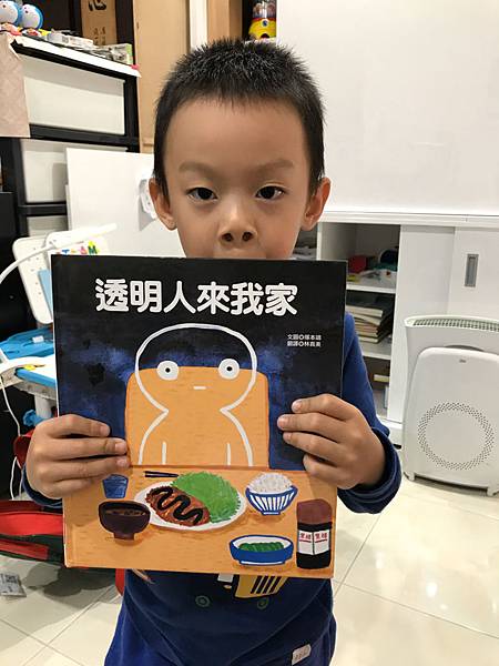 《透明人來我家》,故事是從小朋友在吃晚餐時,發現旁邊坐了一個透明人,吃著小朋友的炸豬排、高麗菜、海帶味噌湯和白飯。因為飯菜部是透明的,所以透明人吃進肚子裡的食物,全都可以看得很清楚。
