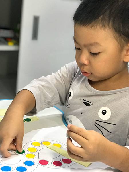 當媽咪再次檢查作業內容時,發現需要的硬幣要著色,馬上讓哥哥補上顏色,大概是明天要出去玩,哥哥的配合度超高,也是迅速完成學習單的要求。
